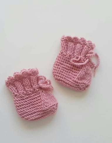 Megztos vilnonės kojinytės – tai, ko reikia į kiekvieno naujagimio kraitelį. Kojinytės turi būti iš kiek šiurkštesnės 100% avies vilnos, kad kutentų mažylio padukus ir taip skatintų kraujotaką. Pirmosios kojinytės – ne tik praktiška dovana, bet ir drabužėlis, kuris dažnai saugomas prisiminimų skrynelėje.